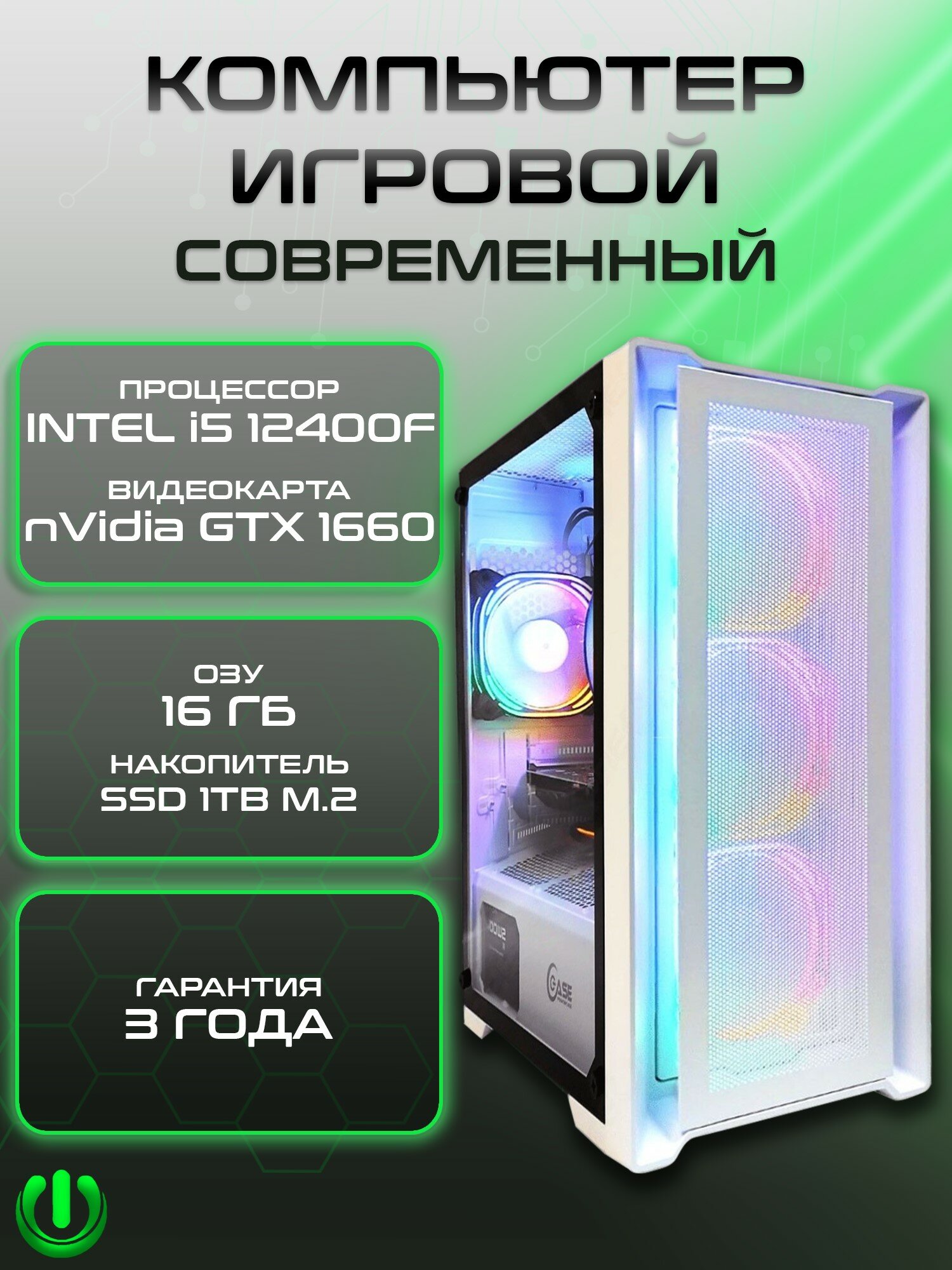 Игровой компьютер PREON Voyager MS (Intel Core i5-12400F,Intel H610M D4,16Gb DDR4,SSD 1Tb,nVidia GTX 1660,600W,Windows10 PRO,MS Office) информация: