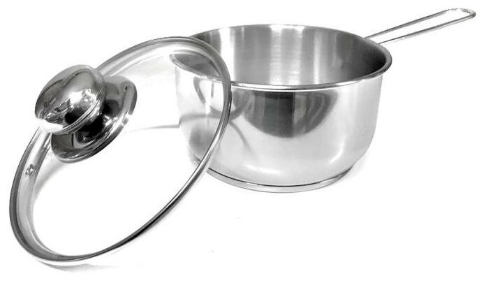 Ковш для кипячения молока, 1,75 л, d=16 см, капсульное дно, с теплораспределительным слоем, стеклянная крышка, металлическая ручка