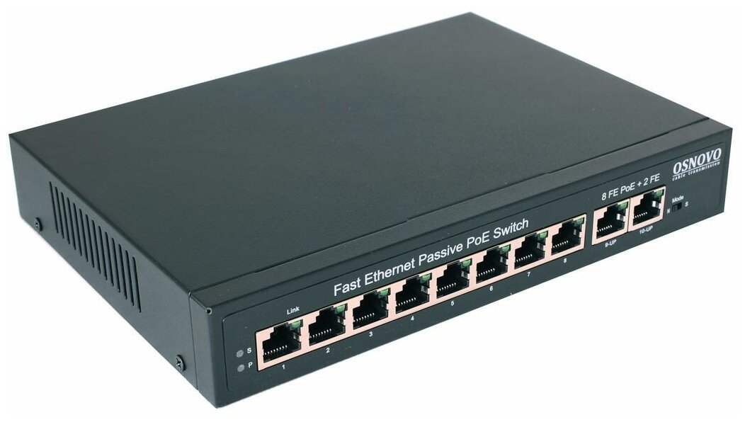 Коммутатор Osnovo SW-21000/A(120W) 120W управляемый Passive PoE коммутатор, 8*10/100 Base-T+ 2*10/100 Base-T Uplink, до 30W на порт