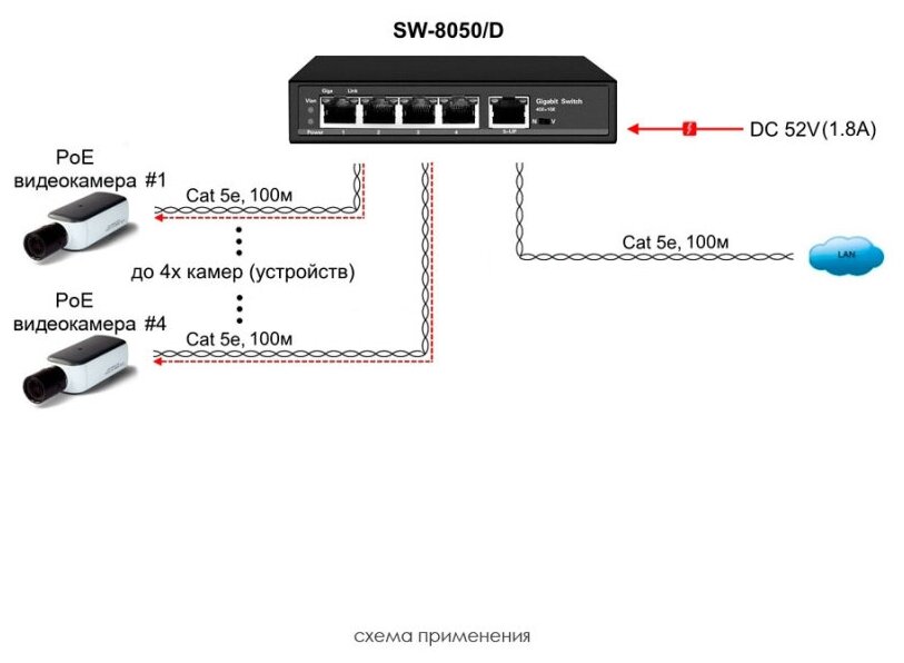 Коммутатор Osnovo SW-8050D 5G 4PoE 90W неуправляемый информация: