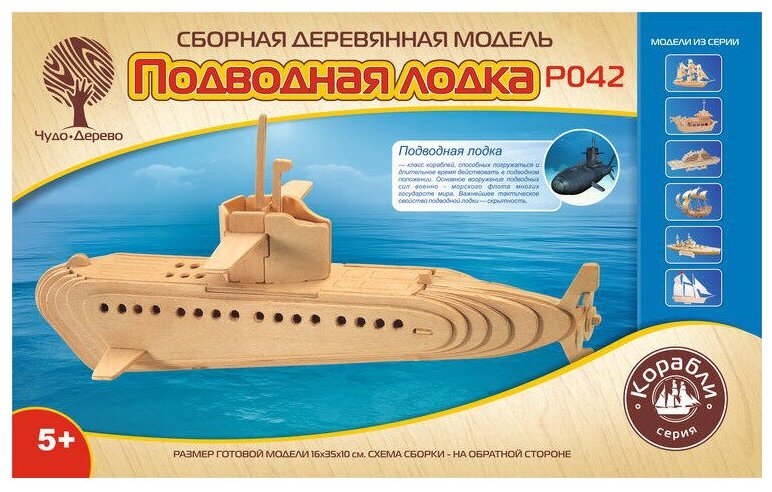 Сборная деревянная модель Чудо-Дерево Корабли Субмарина (4 пластины) P042