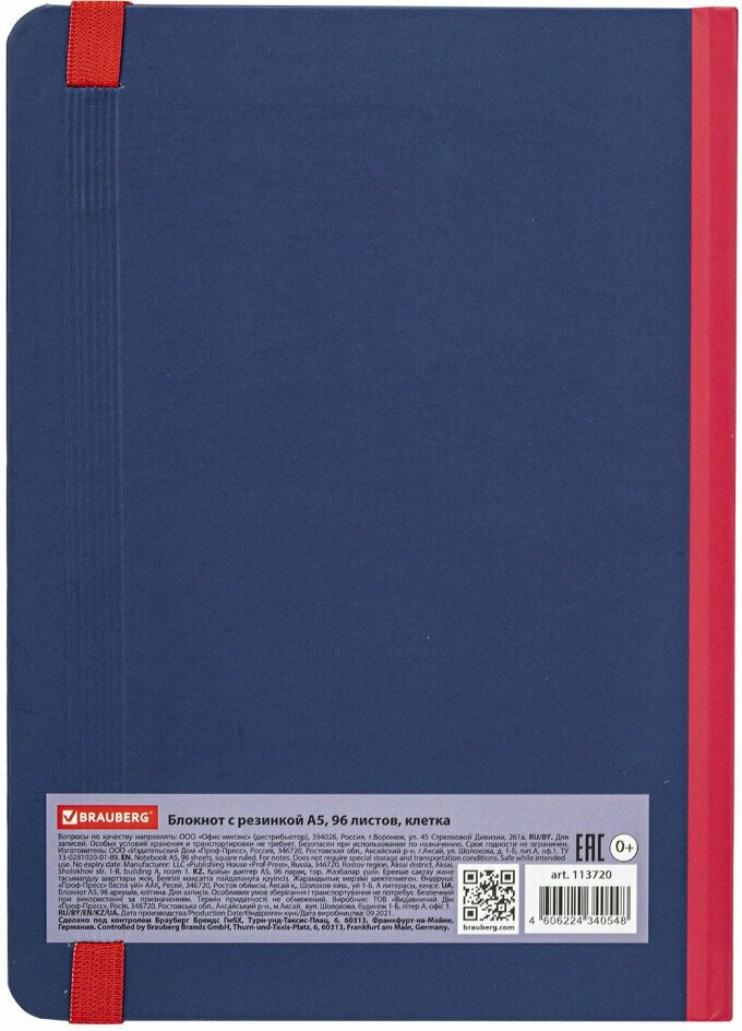 Блокнот Brauberg с резинкой в клетку 96 листов, А5 145х203 мм, твердая обложка, "London" (113720)