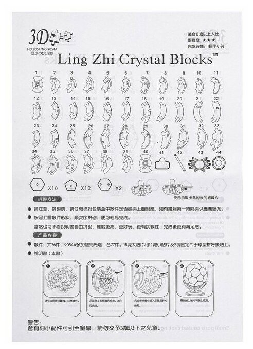 Пазл 3D кристаллический "Мяч", 77 деталей, световые эффекты, работает от батареек, микс информация:
