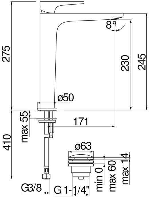 | Длина излива | 171 мм |