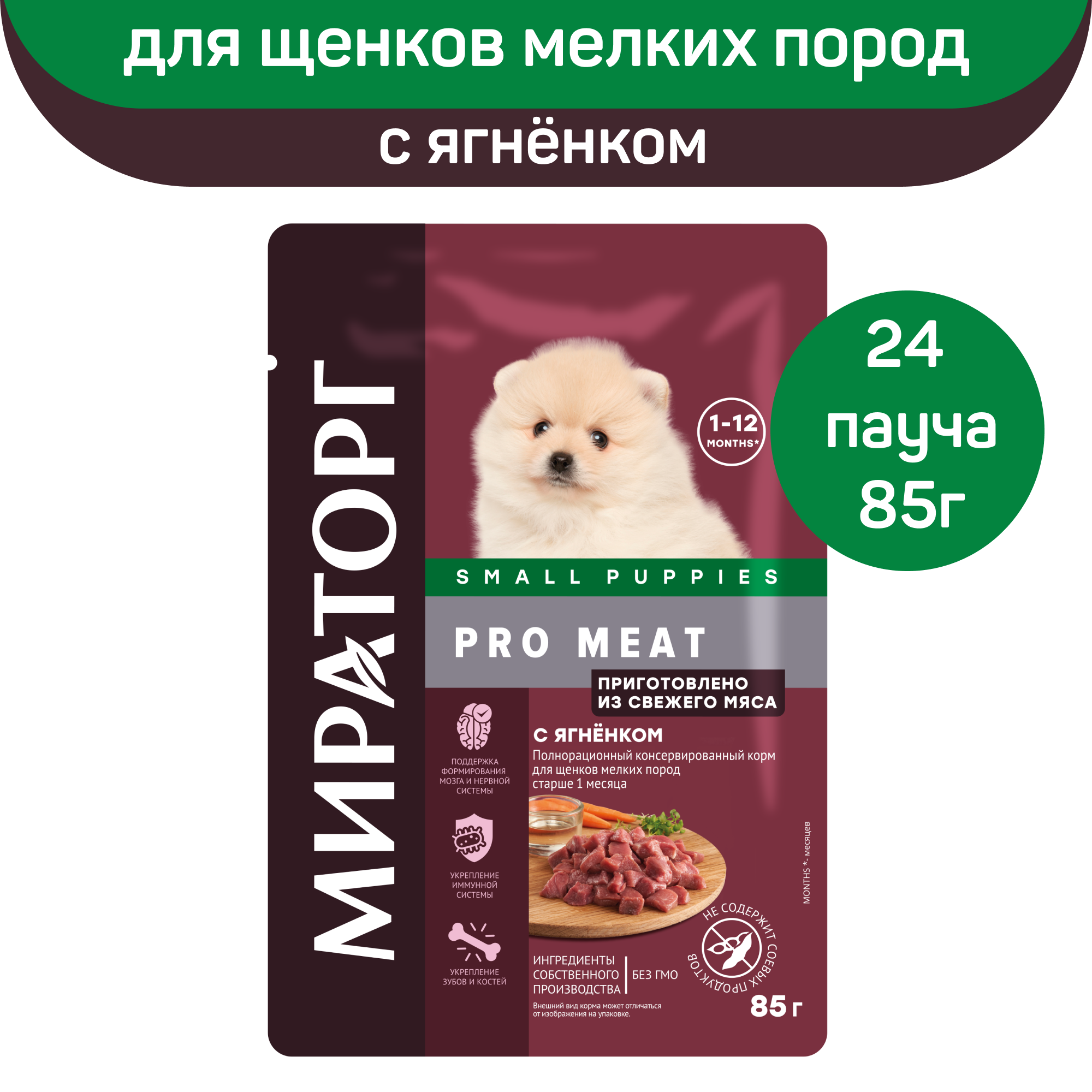 Мираторг PRO MEAT SMALL PUPPIES для щенков маленьких пород с ягненком (85 гр х 24 шт) информация: