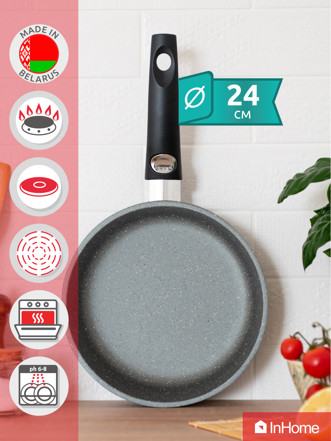 Сковорода Inhome 24 см + съемная ручка, "Stone Power" Гранит IVFS/024 1 730 ₽