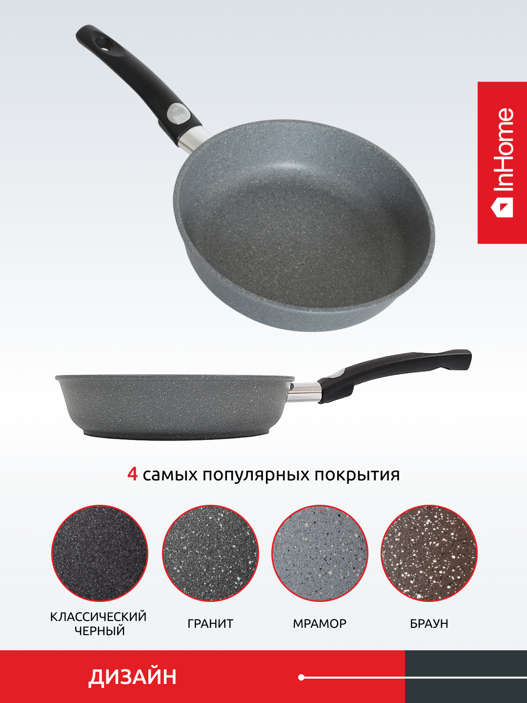 Литая сковорода с антипригарным покрытием, съемная ручка, InHome IN0326/МR0 1 972 ₽