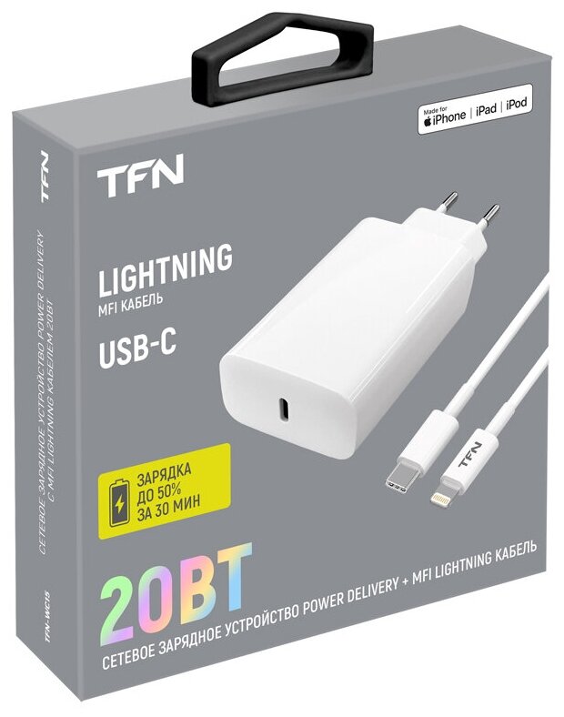Сетевое ЗУ TFN TypeC, 20Вт, с кабелем Lightning MFI, белый TFN, TFN-WC15 информация: