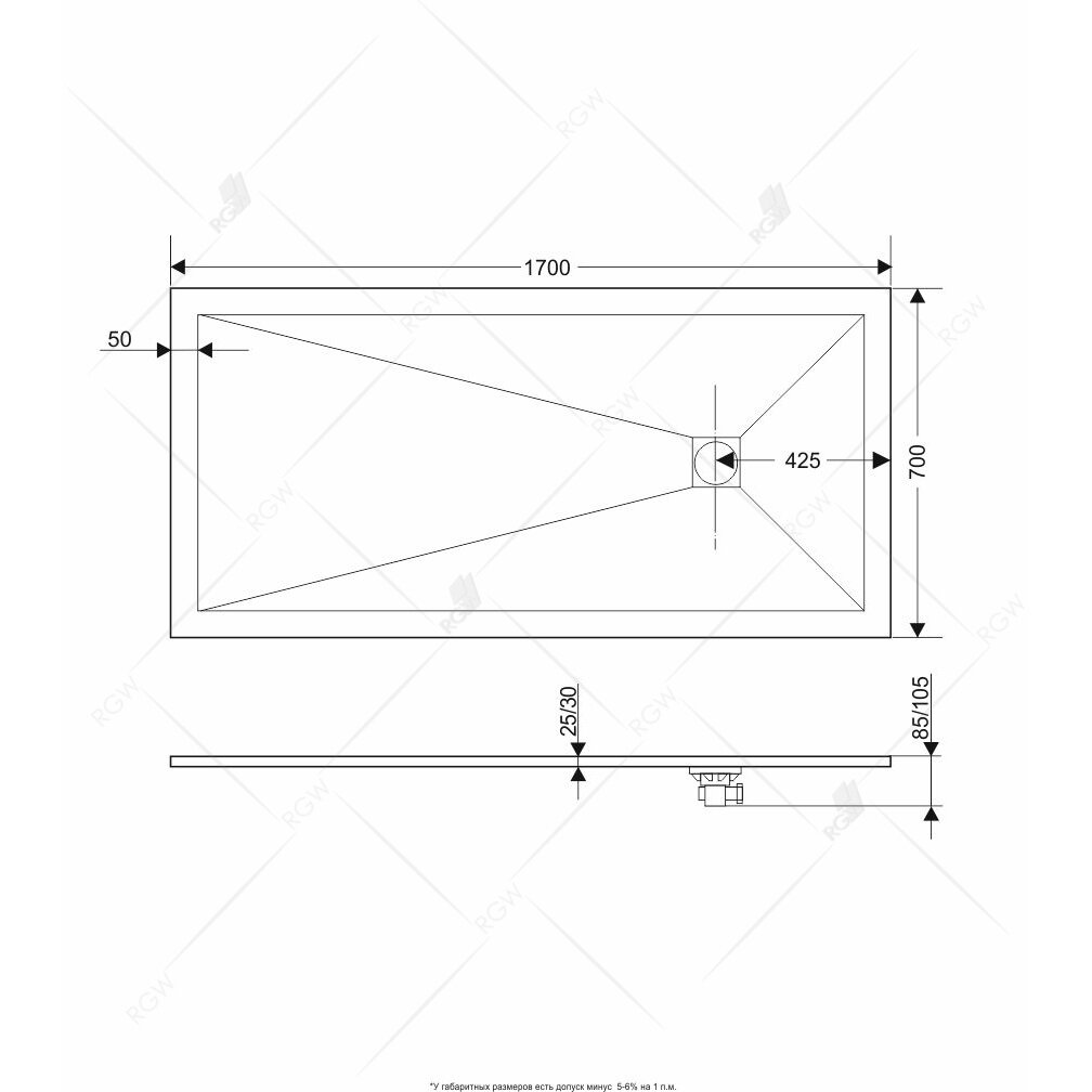 Душевой поддон RGW 70х170х2,5 см ST-0177W Белый, Прямоуг Ø90 Каменный (16152717-01) информация: