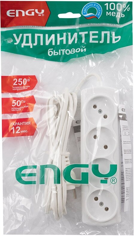 Удлинитель ENGY "Эконом" 3м/4роз. (ШВВП 2х0,75) информация:
