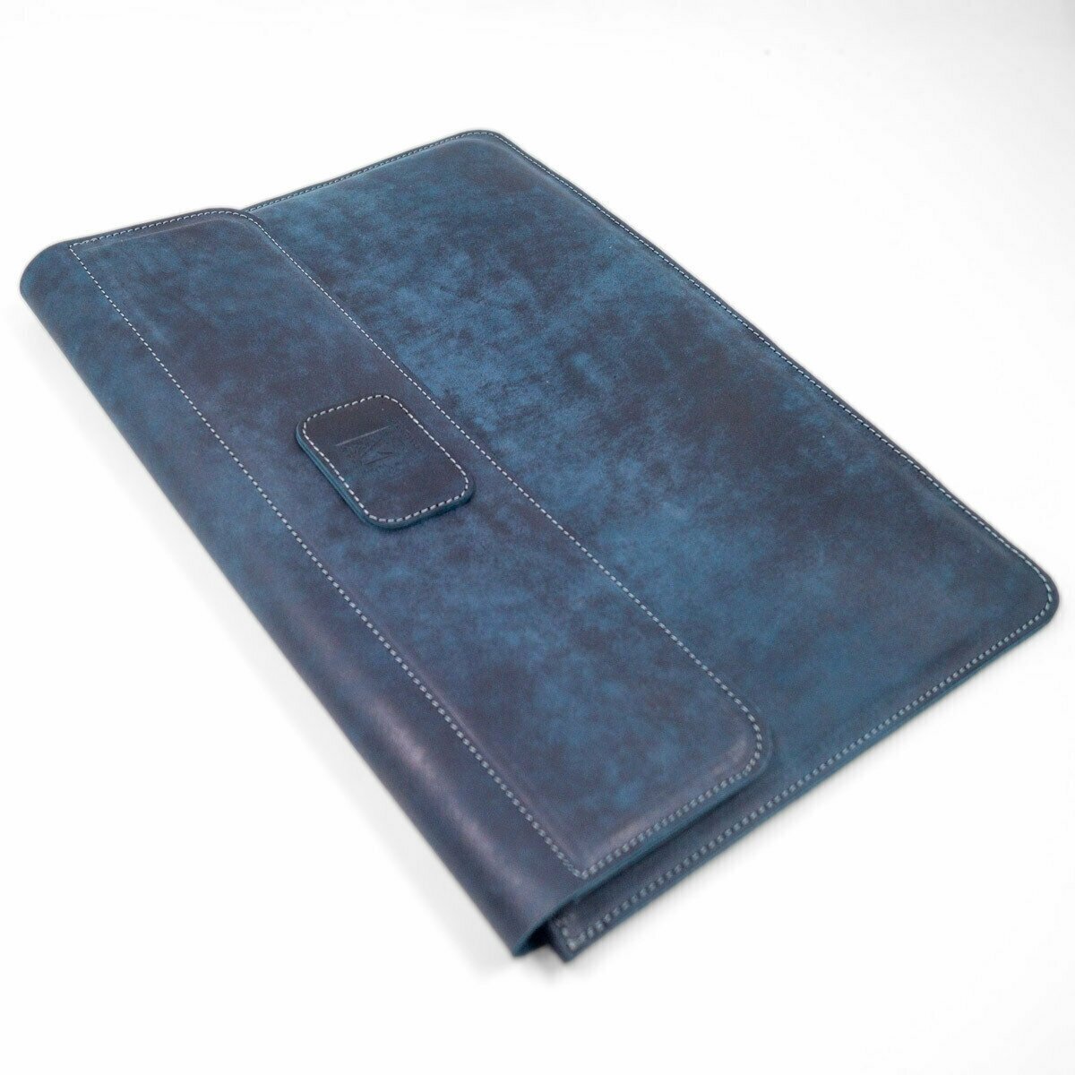 Кожаный Чехол - папка J.Audmorr для Macbook 14 Pro (2021) / Ноутбука 13,3"-14", с размерами до 320 х 225 х 18 мм, синий, NewPort 13.3 Navy