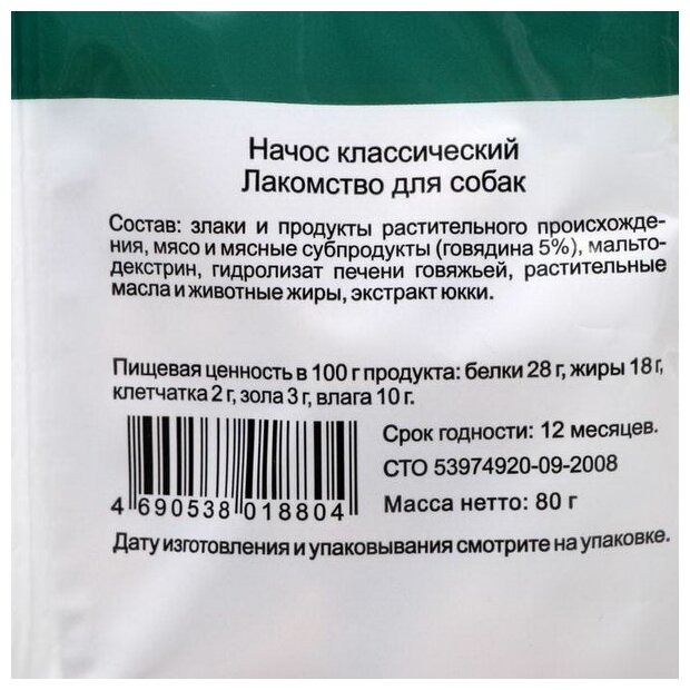 ТитБит Золотая коллекция начос классический д/собак 80 г информация: