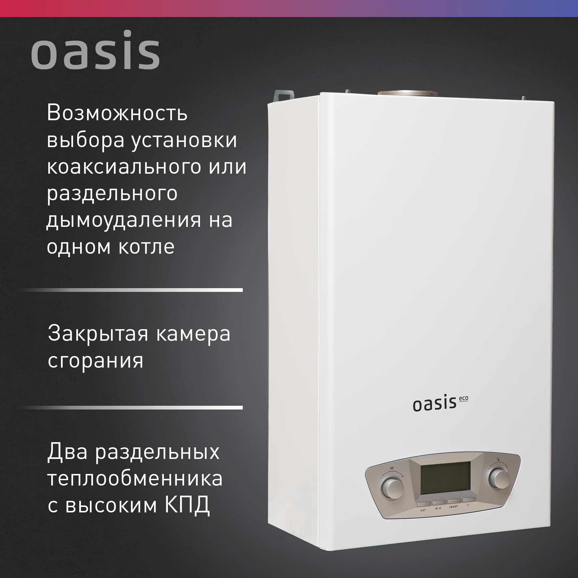 Котел газовый OASIS Eco RE-24, 24 кВт, настенный, двухконтурный, турбированный 83 137 ₽