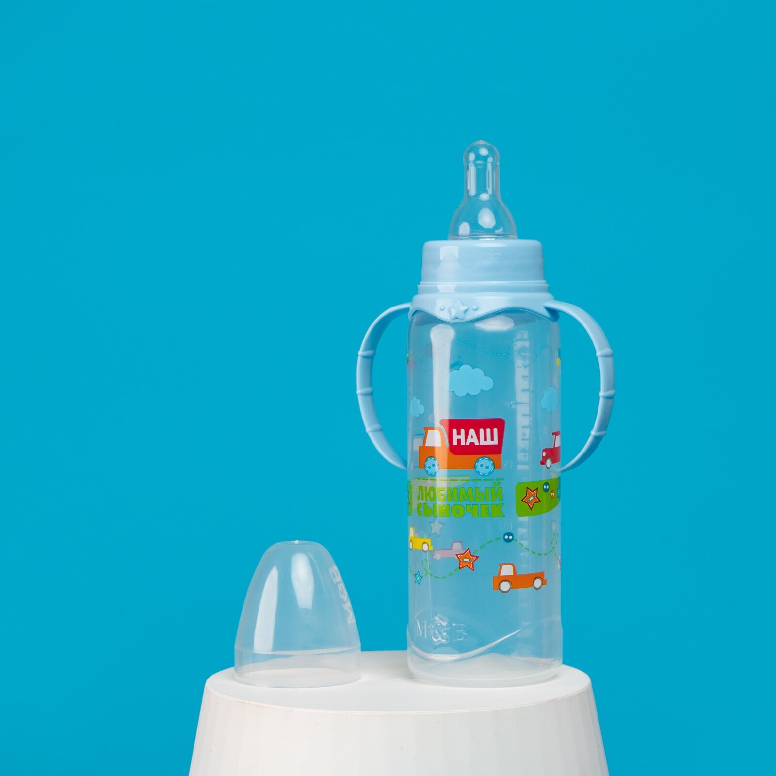 Бутылочка для кормления Mum&Baby "Сыночек" классическая, с ручками, 250 мл., для детей и малышей от 0 месяцев , цвет голубой 350 ₽
