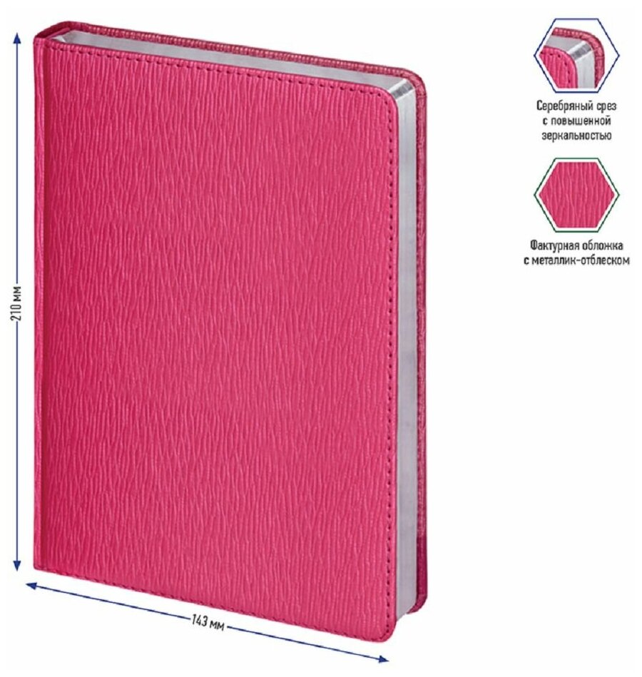 Ежедневник недатированный, А5, 160л., кожзам, Berlingo "Starlight", серебр. срез, фуксия 1 872 ₽