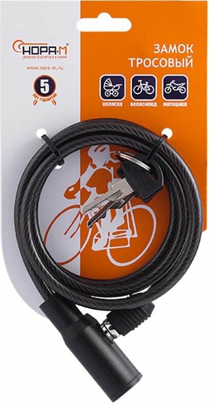 Замок велосипедный нора-м №25 размер 6х1000 мм, черный (18999) информация: