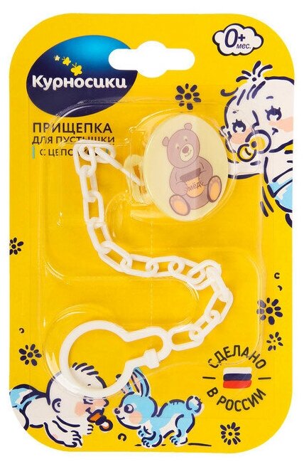Курносики прищепка для пустышки с цепочкой Мишутка арт.19554 1 шт