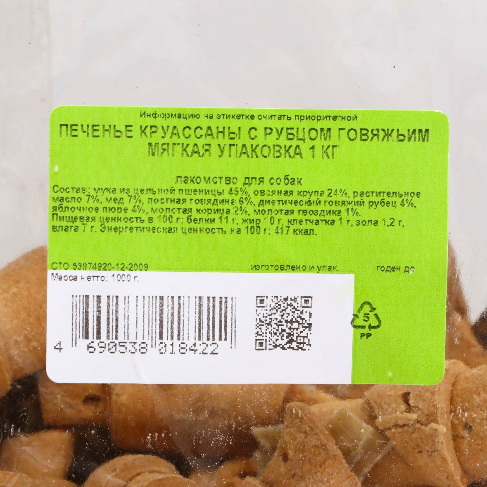 Лакомство "Печенье Круассаны" для собак, с рубцом говяжьим, 1 кг информация: