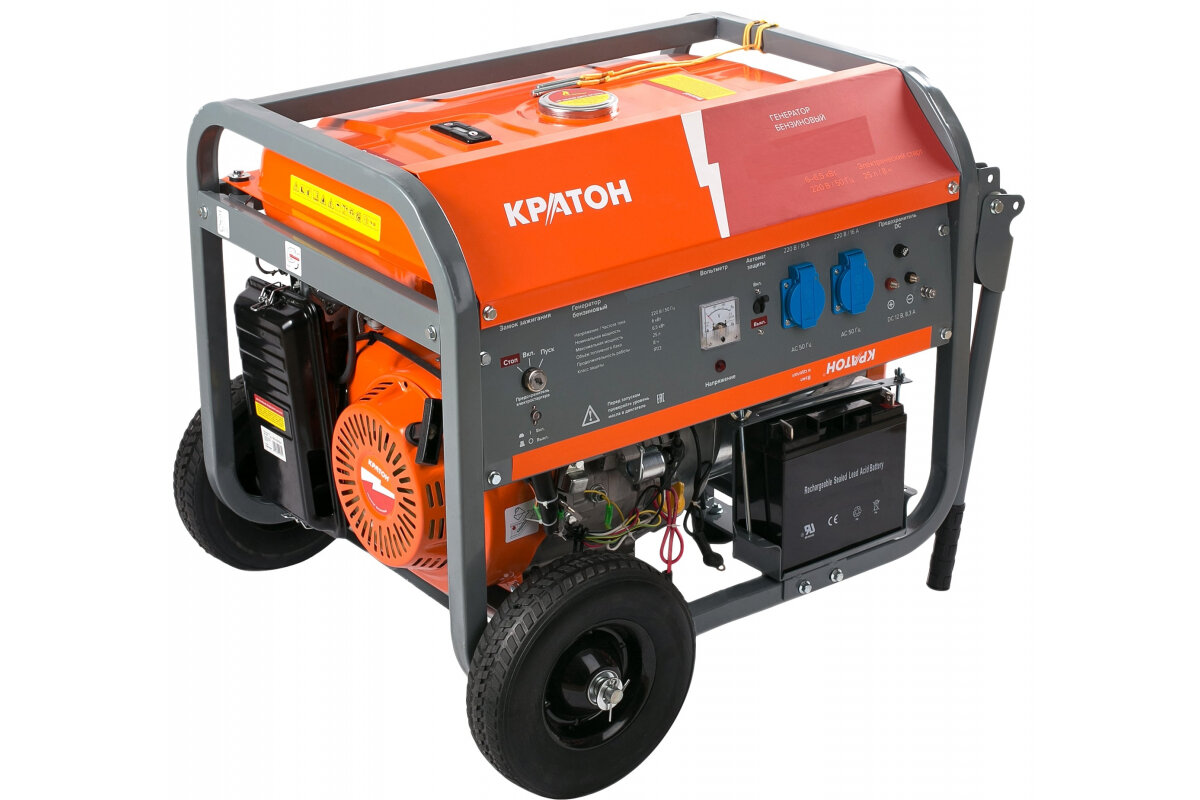 Генератор бензиновый Кратон GG-6500EM, 6,5кВт, однофазный, с колесами, электростартер