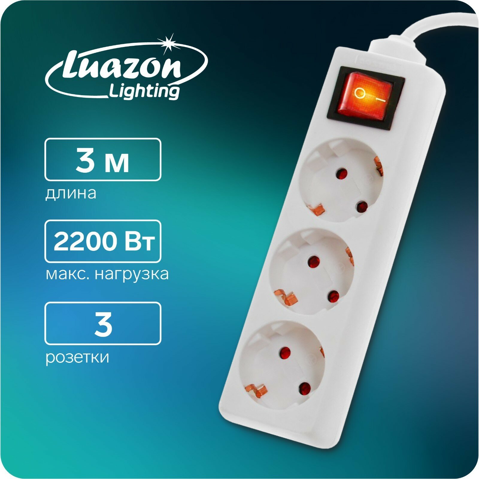 Отзывы на Luazon Lighting Удлинитель Luazon Lighting, 3 розетки, 3 м, 10 А, 2200 Вт, 3х1.5 мм2, с з/к, с выкл., Б