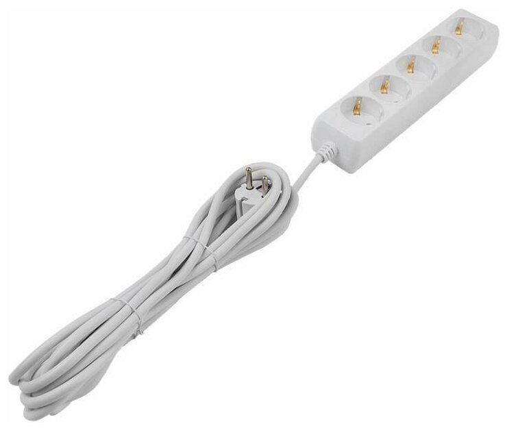 Удлинитель бытовой GES-10-2x075-5-5m, 10А, 2х0,75 мм2, 5 мест, 5 метров, без заземления
