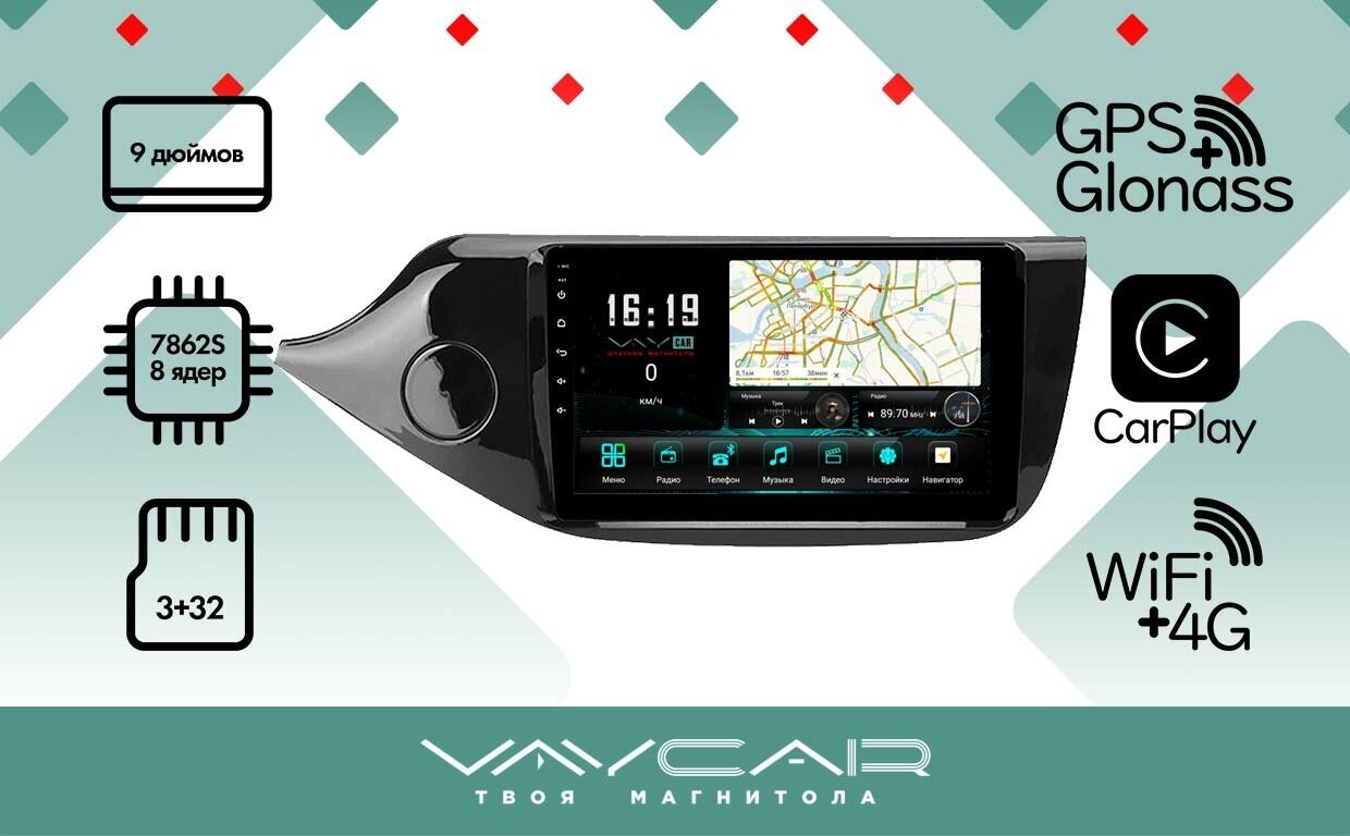 Магнитола Vaycar 09V2 для KIA Ceed 2013-2018 (Андроид, 2+32, 8 ядер, WiFi, BT, 4G, GPS, QLED 9")