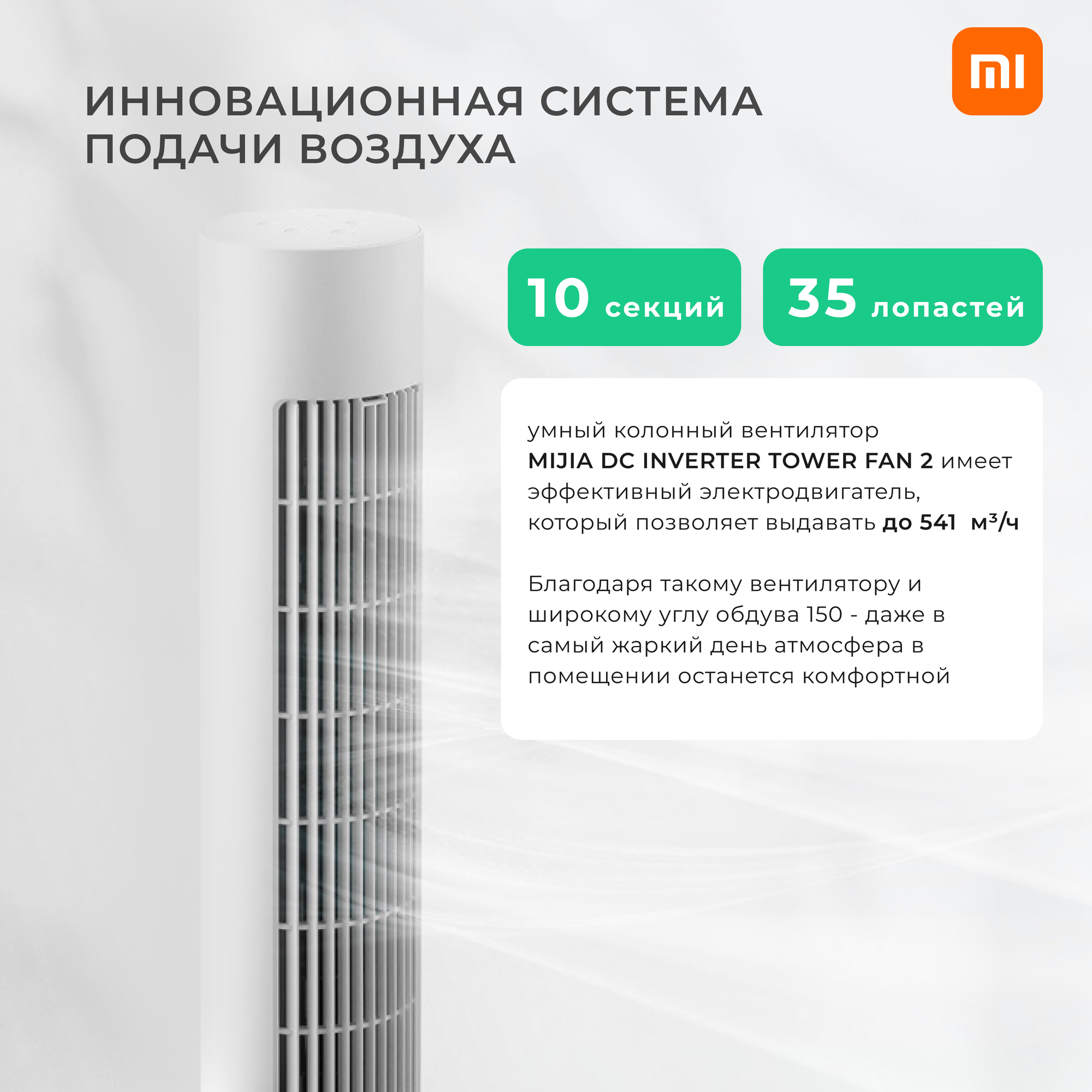 Напольный вентилятор Xiaomi Mijia DC Inverter Tower Fan 2, белый (BPTS02DM) информация: