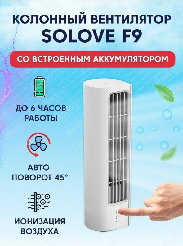 Портативный колонный вентилятор SOLOVE Tower Fan 3000mAh 3 Speed c функцией вращения (ионизация)F9 русская версия!!, белый 3 290 ₽