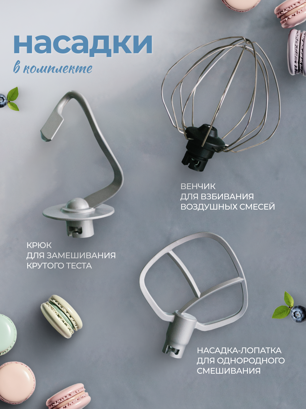 Миксер планетарный MOJO SM-455, объём чаши 5,5 л, 1300 Вт, 10 скоростей информация: