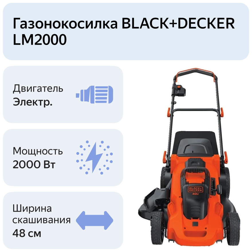 Электрическая газонокосилка BLACK+DECKER LM2000, 2000 Вт, 48 см