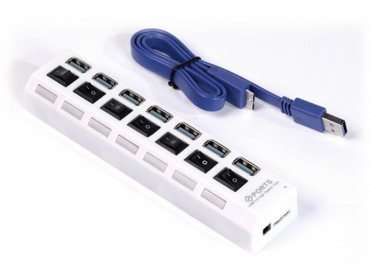 10 цен на Хаб USB 3.0 Smartbuy с выключателями, 7 портов, СуперЭконом, белый (SBHA-7307-W)