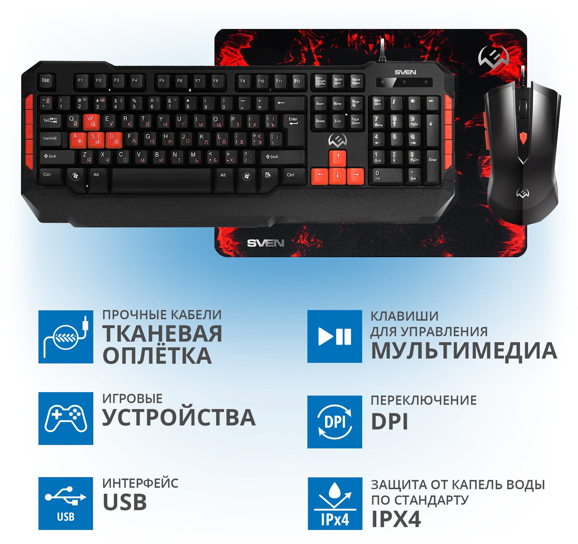 SV-018863 Клавиатура+мышь+коврик проводная SVEN GS-9000 черный информация:
