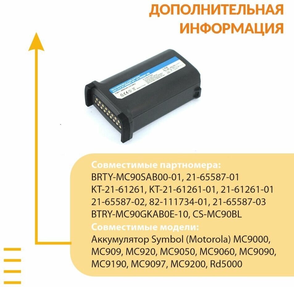 Аккумулятор Vbparts для терминала сбора данных Motorola Symbol MC9000 / MC9090 OEM 7.4 V 2600mAh 060 информация:
