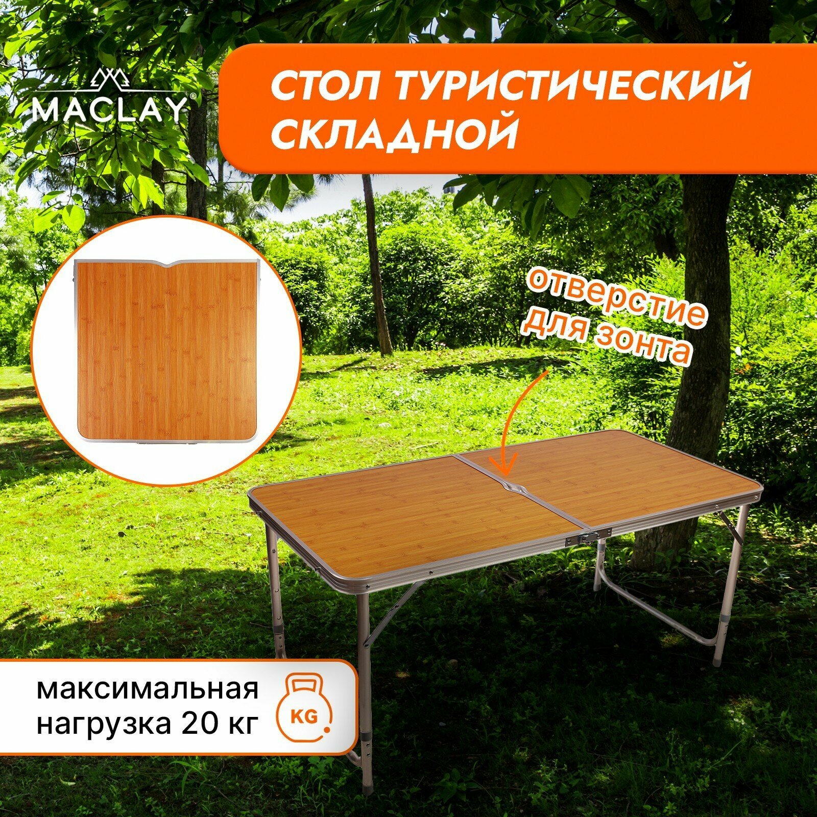 Стол Maclay, туристический, складной, 120 х 60 х 70 см, под дерево, цвет коричневый