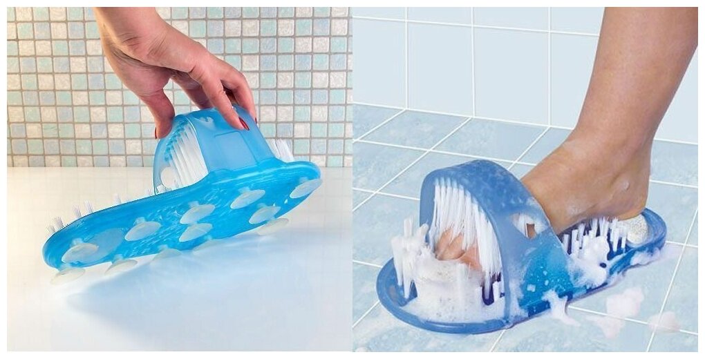 Отзывы на Массажный тапок щетка / СПА для мытья ног / Мочалка тапок/Синий