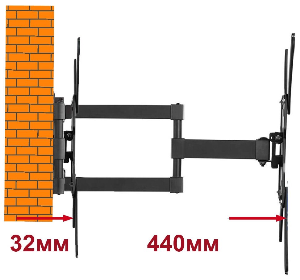 Кронштейн настенный наклонно поворотный для телевизора 32-55 дюйма Zoll диагональ информация: