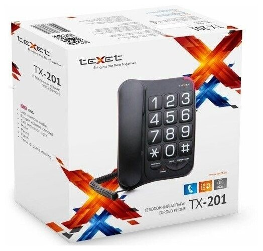 10 цен на Телефон проводной (TEXET TX-201 черный)