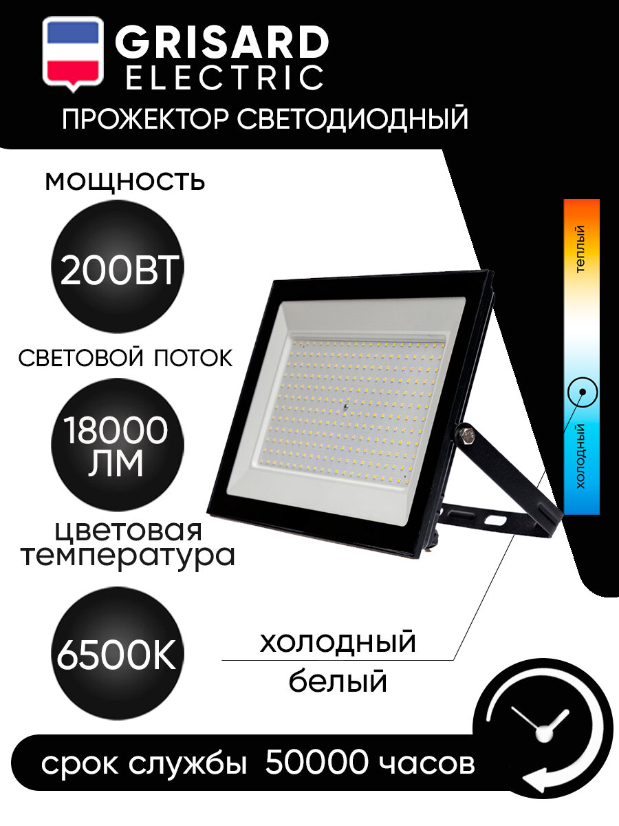 Уличный светодиодный прожектор Grisard Electric сдо 200 черный ip65 6500 k GRE-004-0008 информация: