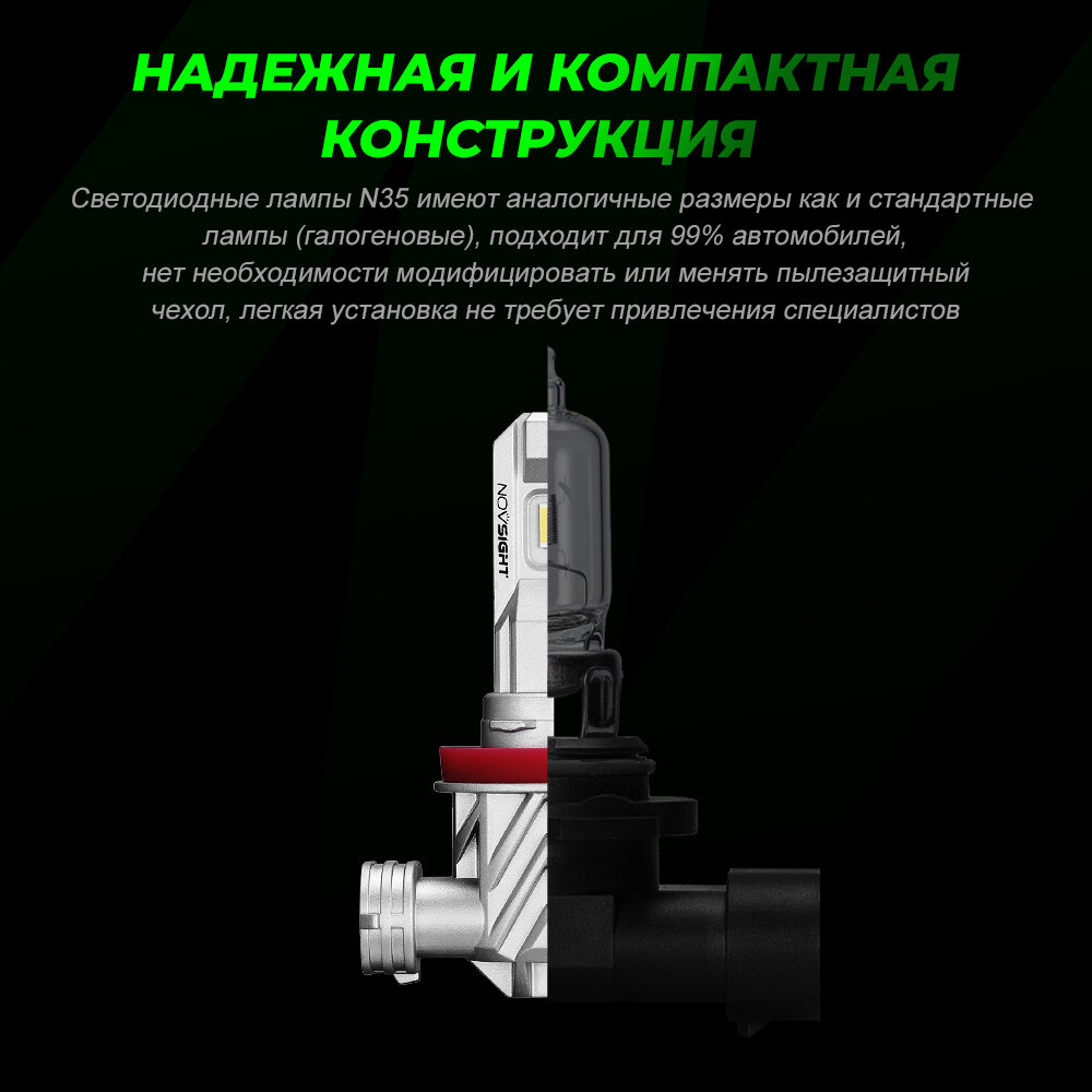 Отзывы на Светодиодная лампа Novsight N35 H11 цоколь PGJ19-2 50Вт 2шт 6000К 10000Лм белый свет LED автомобильная