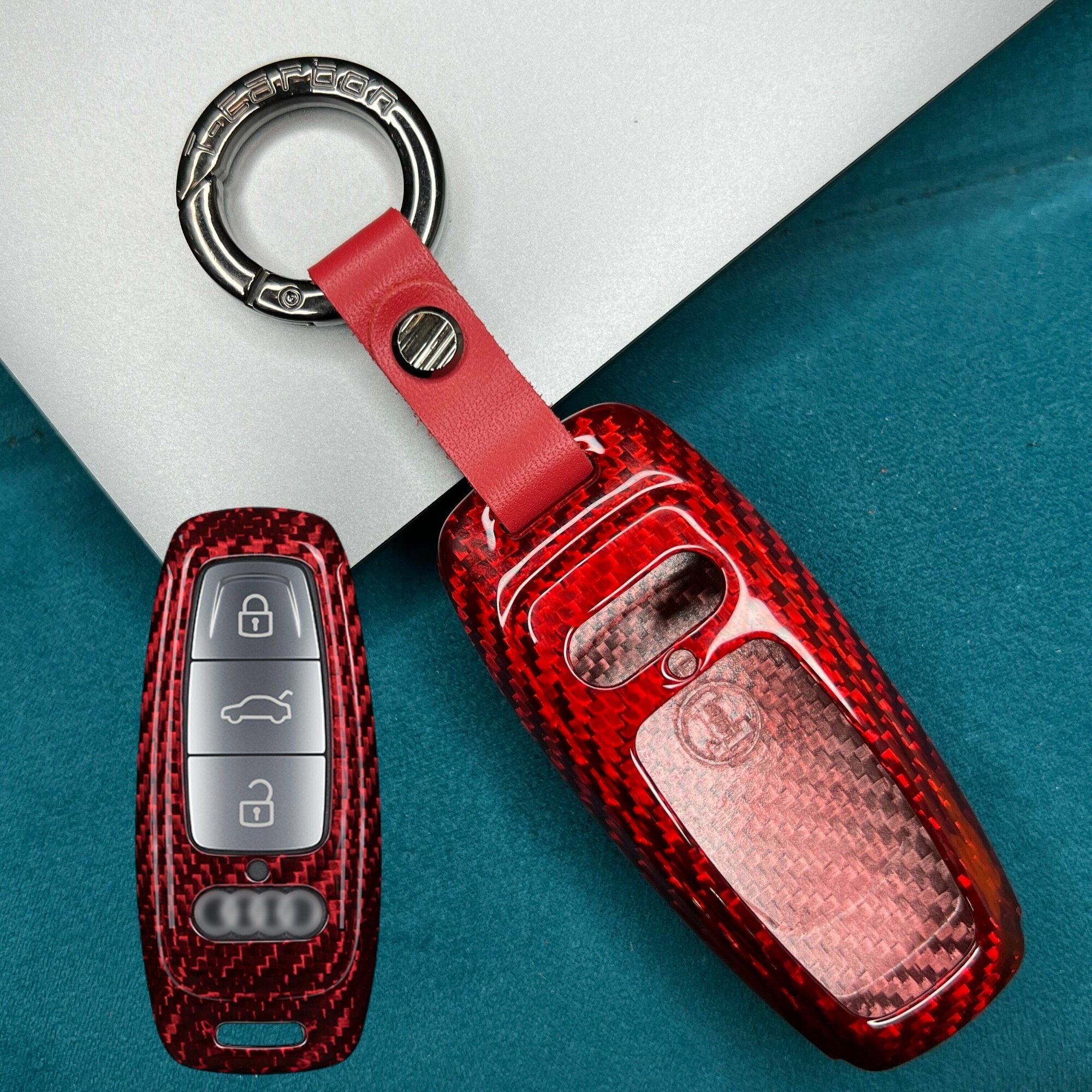 Чехол для ключа Audi из карбона красный / Чехол на ключей Ауди A6, A7, A8, Q8/e-tron GT