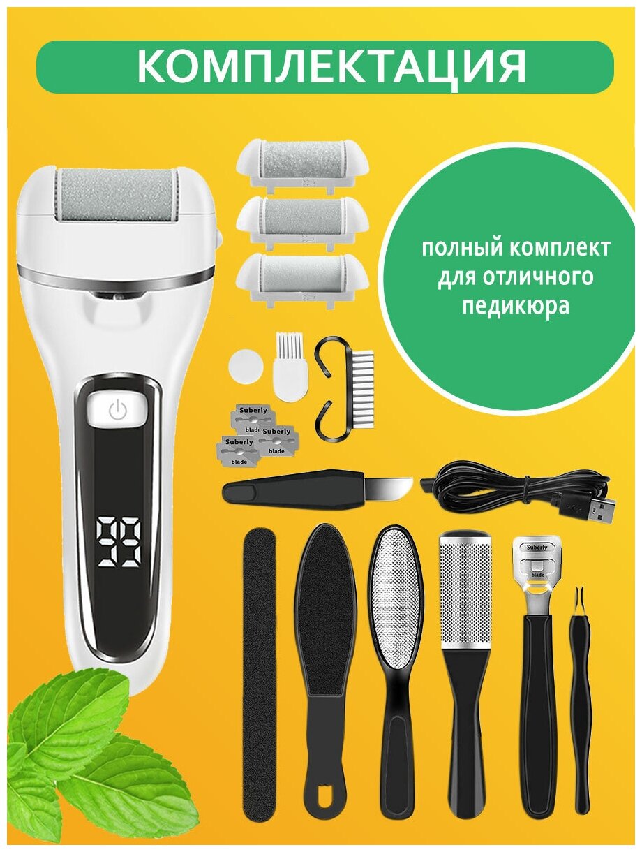 Электрическая пилка для ног от натоптышей и огрубевшей кожи + полный комплект для педикюра информация: