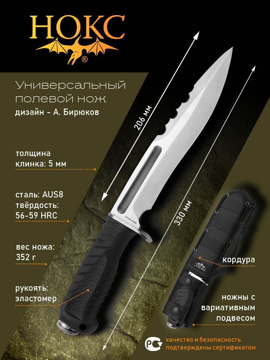 Нож нокс 607-788821 (Асгард), универсальный полевой нож, сталь AUS-8