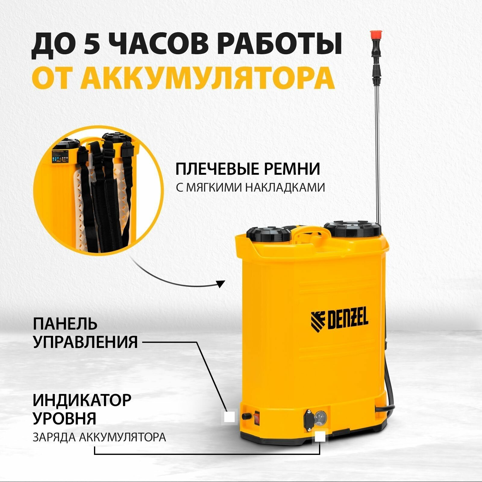 10 цен на Опрыскиватель ранцевый аккумуляторный D-16LA, 16 л, щелочной аккумулятор, 12 В, 8 Ач Denzel