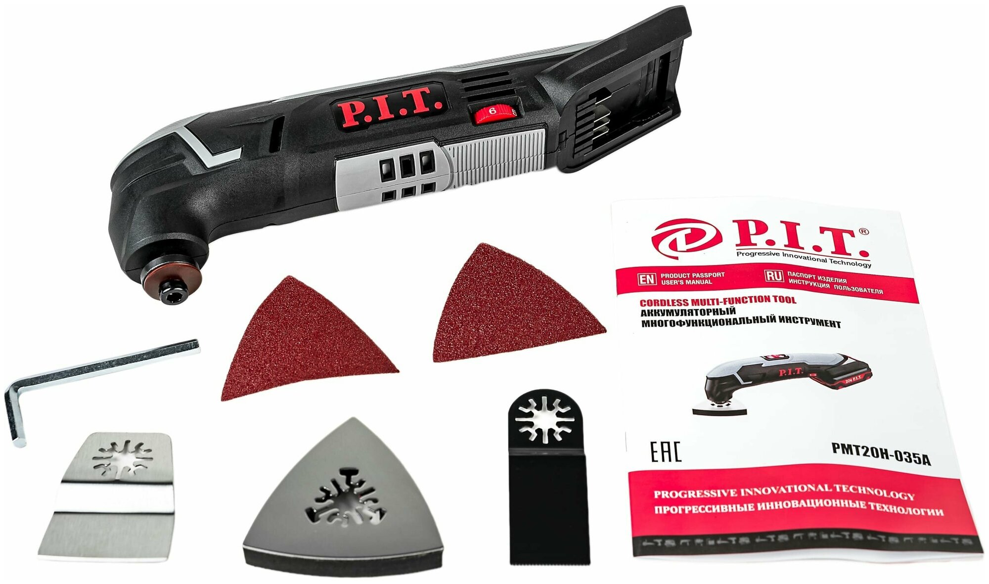 Реноватор аккумуляторный без АКБ и ЗУ P.I.T. PMT20H-035A (3 насадки, 2 расходника, 6 режимов регулировки скорости и оборотов)