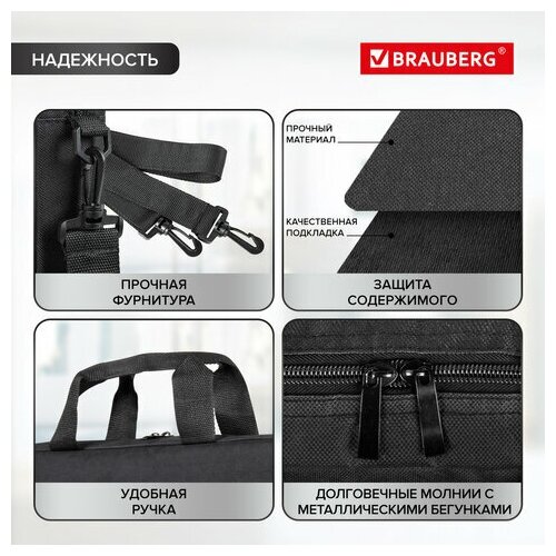 Сумка-портфель BRAUBERG «Practical» с отделением для ноутбука 15,6", черная, 29×40×7 см, 270829 информация: