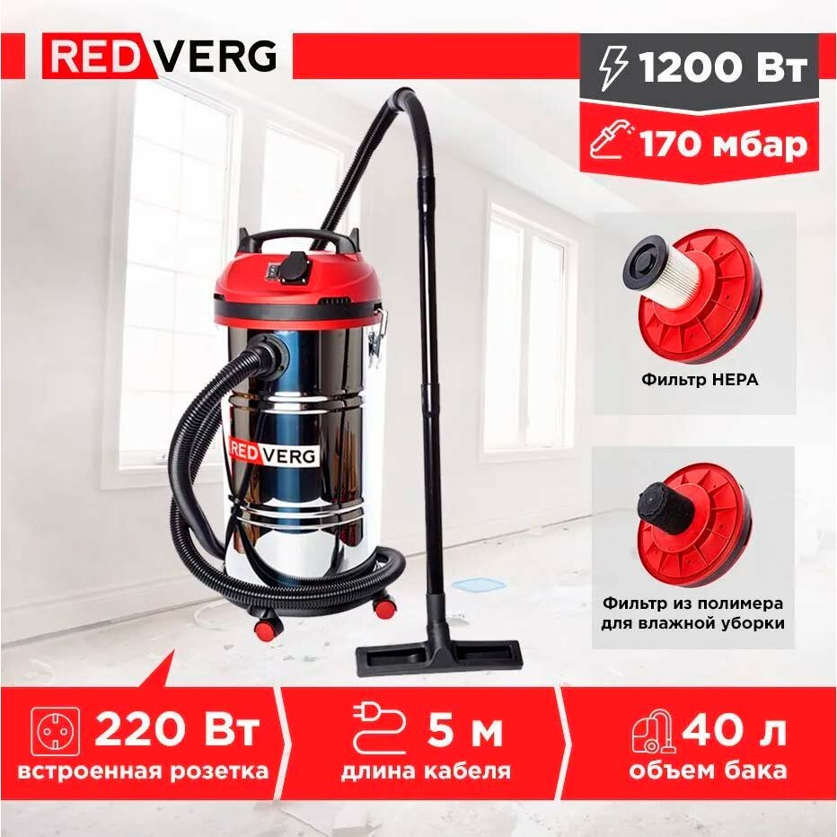 Пылесос RedVerg RD-VC1200S-40S информация: