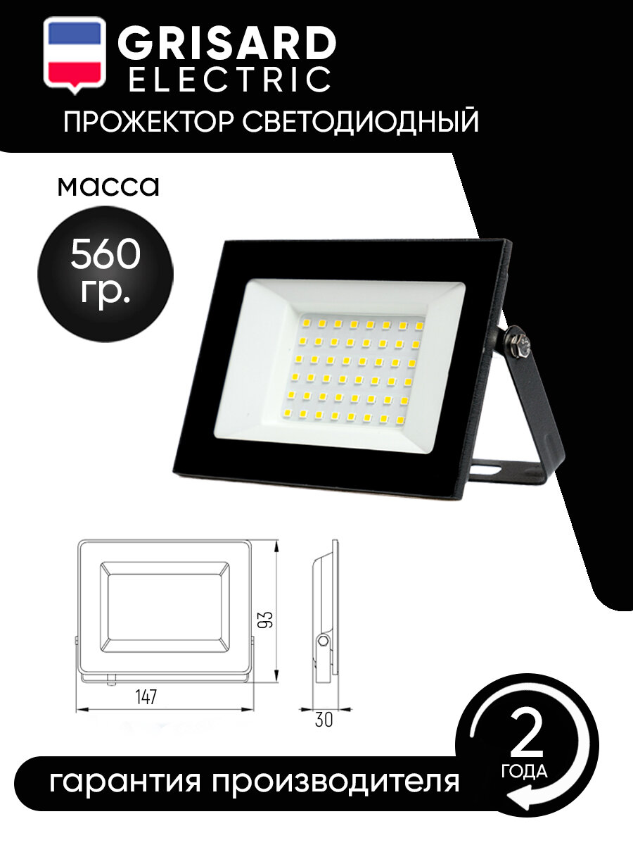 Отзывы на Grisard Electric прожектор уличный сдо 50 светодиодный черный ip65 6500 k GRE-004-0002