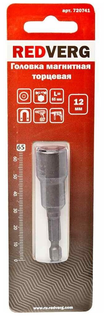 Головка REDVERG магнитная торцевая шестигранная 1/4'' 12х65мм(720741) информация: