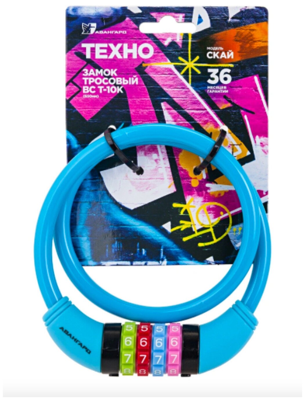 Замок велосипедный кодовый противоугонный авангард ВС-Т10К (650 мм) Техно Скай тросовый