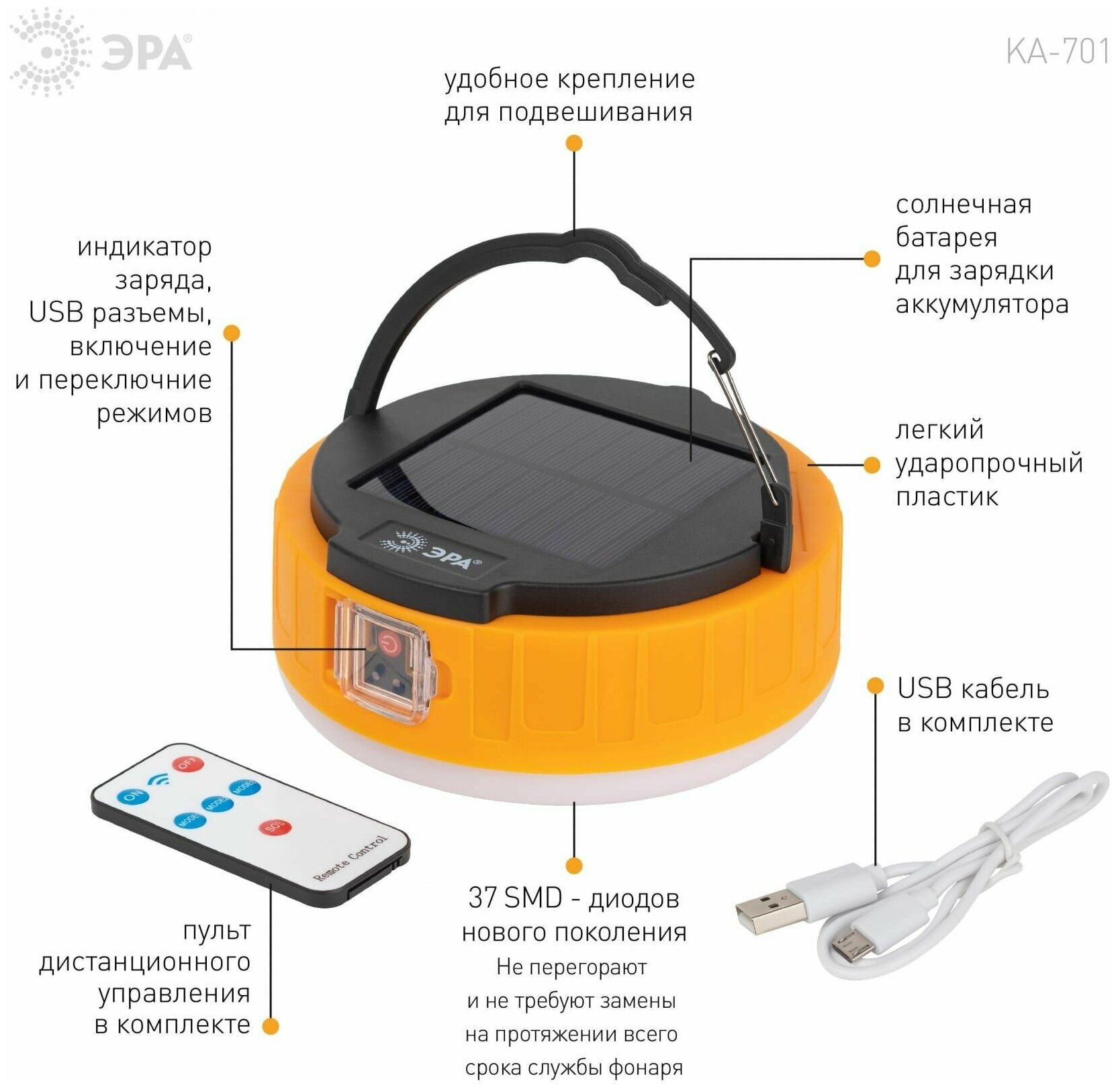 ЭРА Фонарь кемпинговый светодиодный ЭРА KA-701 "Персей" аккумуляторный, на солнечной батарее + пульт информация: